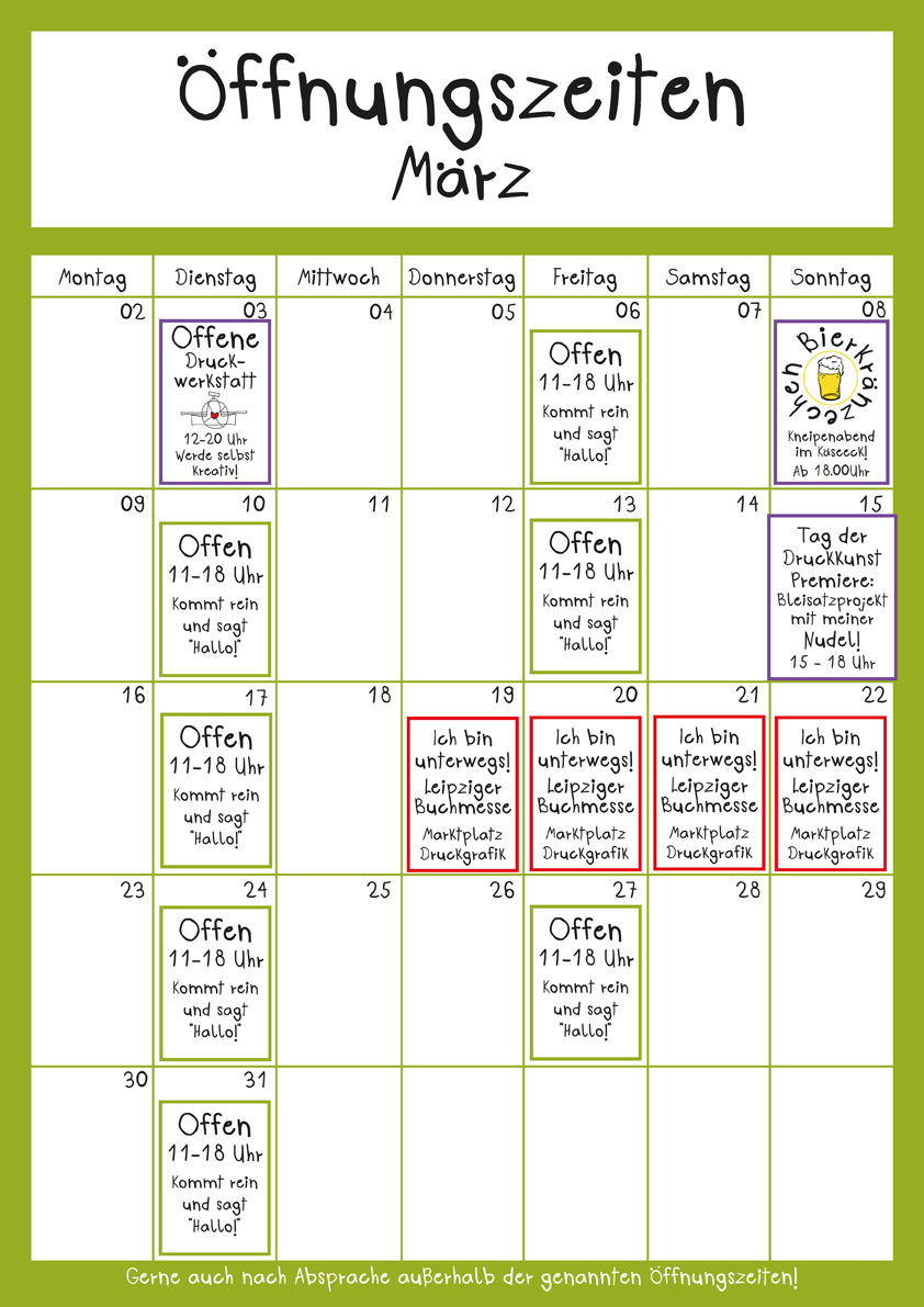 Kaufladen Neuigkeiten Termine Was bisher geschah Mein Newsletter Kontakt Kunst direkt zum Mitnehmen Öffnungszeiten Veranstaltungen Druckwertkstatt Kurse Öffnungszeiten Druckwerkstatt Kurse Öffnungszeiten Was bisher geschah Galerie Neuigkeiten Termine Kontakt Newsletter Radierungen Unikate Schnick-Schnack Versandkosten/AGB